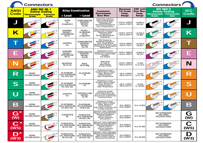 •Thermocouple grade wire, −58° to 2,700°F (−50 to 1,480°C)